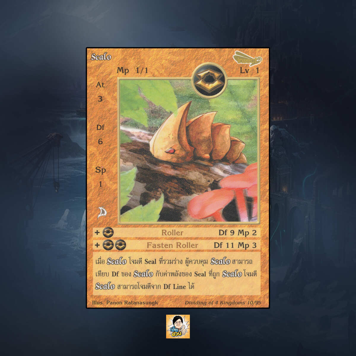 Scalo เป็นการ์ดเกม Summoner Master OG ชุด Dividing of 4 Kingdoms เป็น Seal Cards หมายเลข 10 เลเวล 1 ธาตุดิน เผ่าแมลง: ระดับการค้นหาเป็นทั่วไป