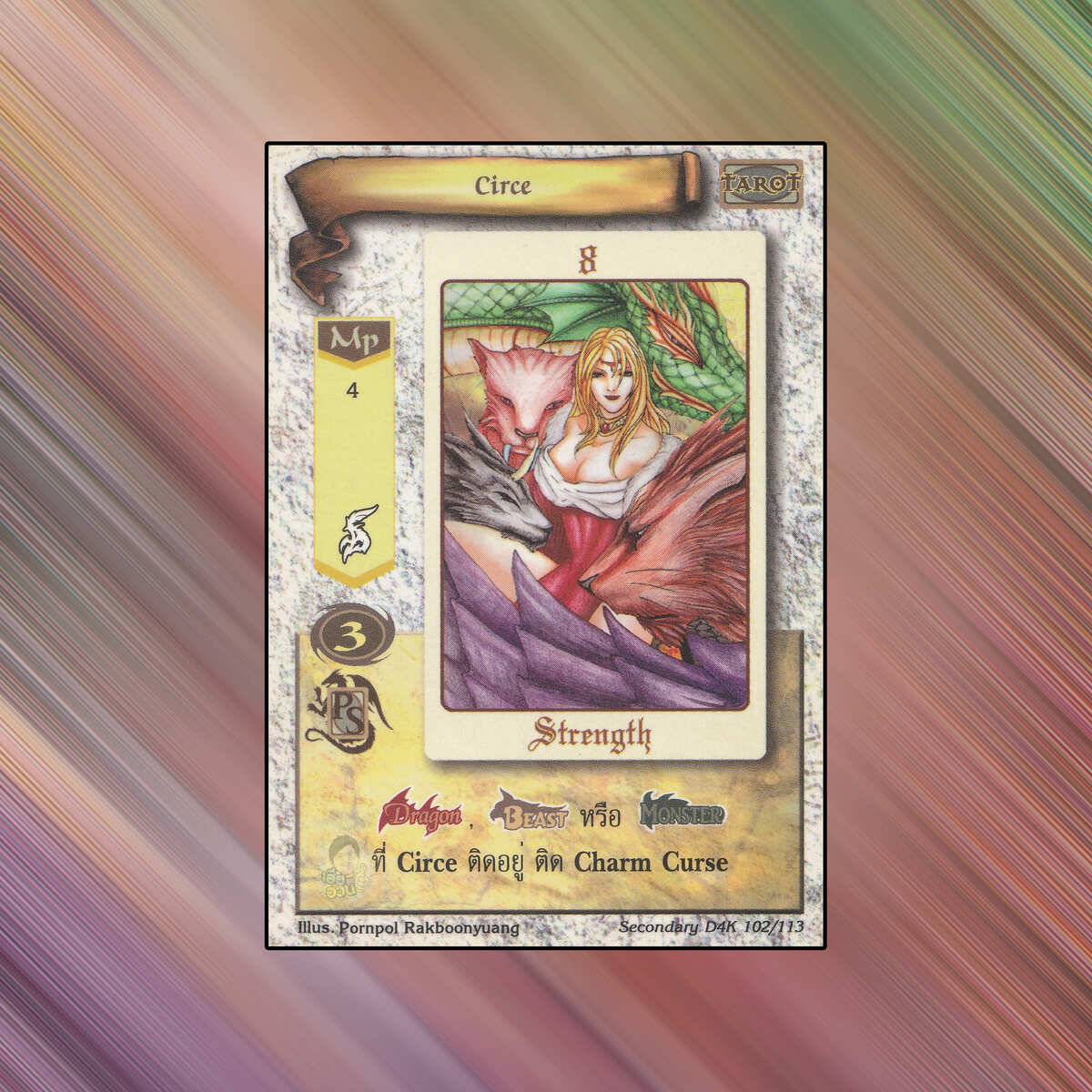 เป็นการ์ดเกม Summoner Master OG ในชุด SecondaryD4K นี้จะมีการ์ดทั้งหมด 114 แบบ Circe เป็น Mystic Card ชนิด Tarot หมายเลข 102 ระดับการค้นหา Common