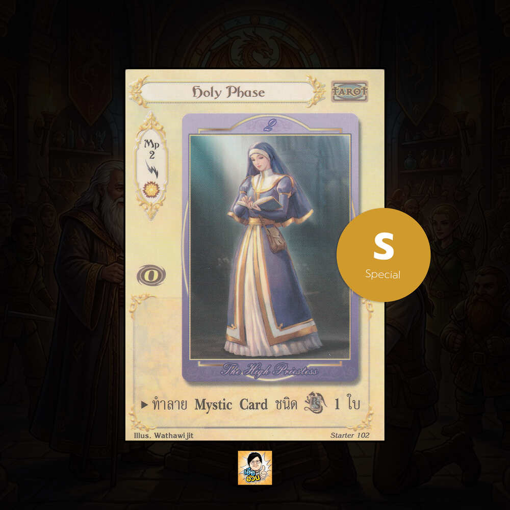 เป็นการ์ดเกม “Summoner Master OG” ในชุด “Starter” นี้จะมีการ์ดทั้งหมด 323 แบบ “Holy Phase” เป็น Mystic Card ประเภท Tarot หมายเลข 102 ระดับการค้นหา Special