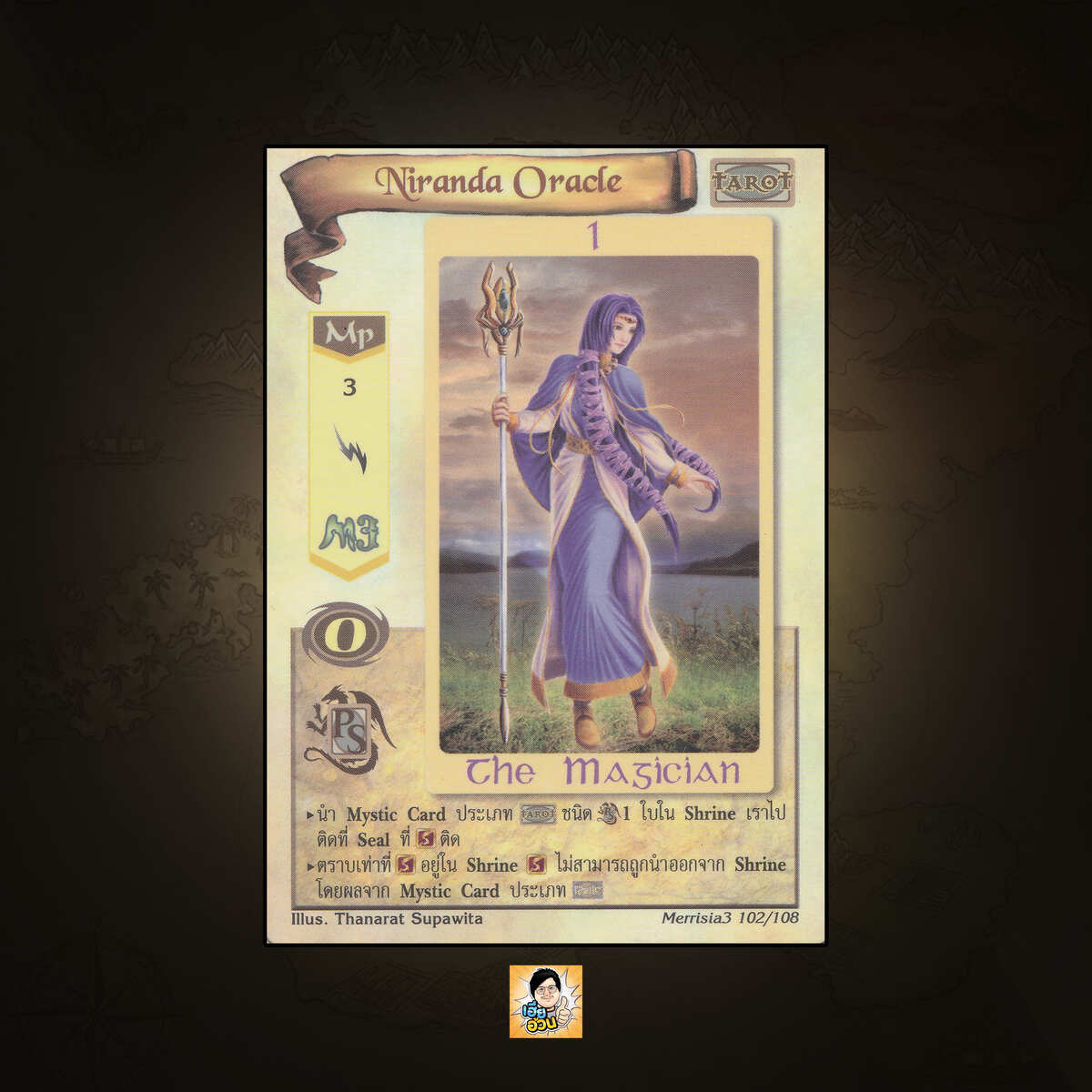 เป็นการ์ดเกม “Summoner Master OG” ในชุด “Merrisia 3rd Impression“ นี้จะมีการ์ดทั้งหมด 108 แบบ “Niranda Oracle” เป็น Mystic Card ประเภท Tarot หมายเลข 102 ระดับการค้นหา Uncommon