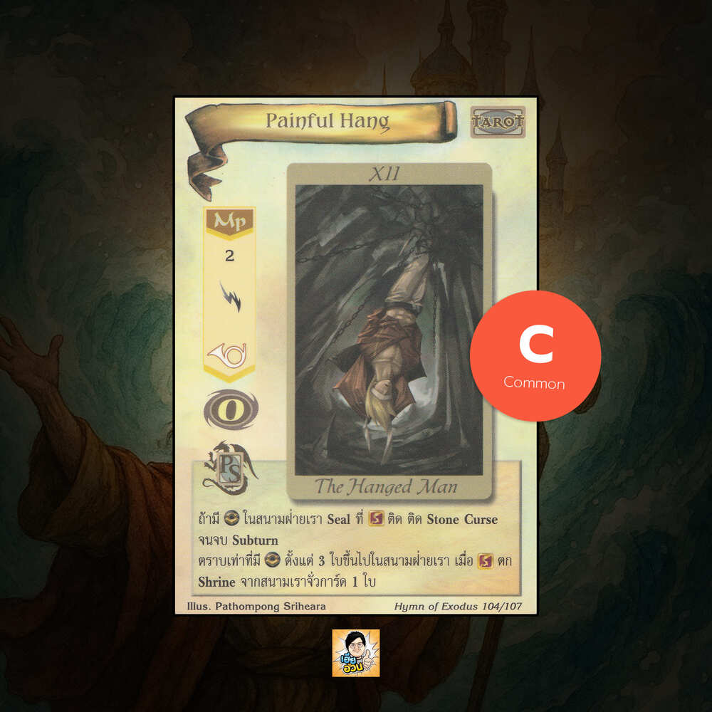 เป็นการ์ดเกม “Summoner Master OG” ในชุด “Hymn of Exodus” นี้จะมีการ์ดทั้งหมด 108 แบบ “Painful Hang” เป็น Mystic Card ประเภท Tarot หมายเลข 104 ระดับการค้นหา Common