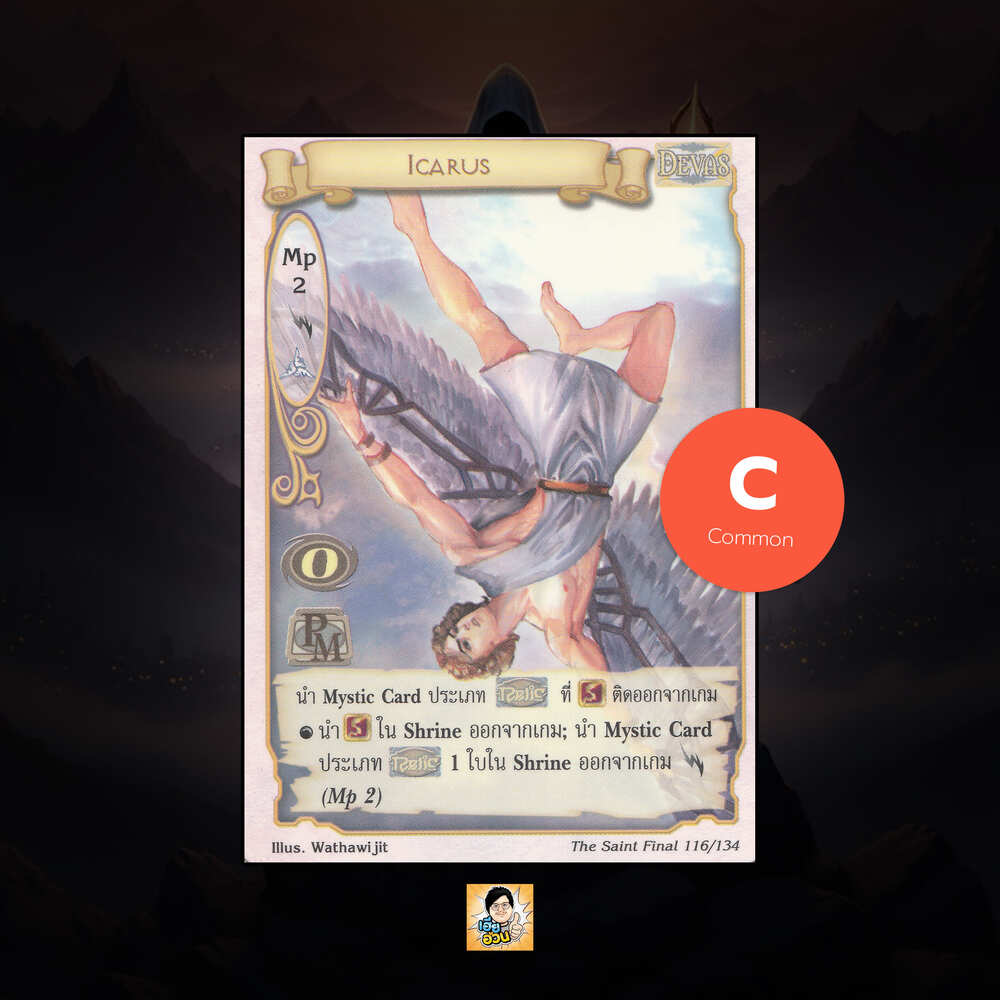 เป็นการ์ดเกม “Summoner Master OG” ในชุด “The Saint Final” นี้จะมีการ์ดทั้งหมด 135 แบบ “Icarus” เป็น Mystic Card ประเภท Devas หมายเลข 116 ระดับการค้นหา Common