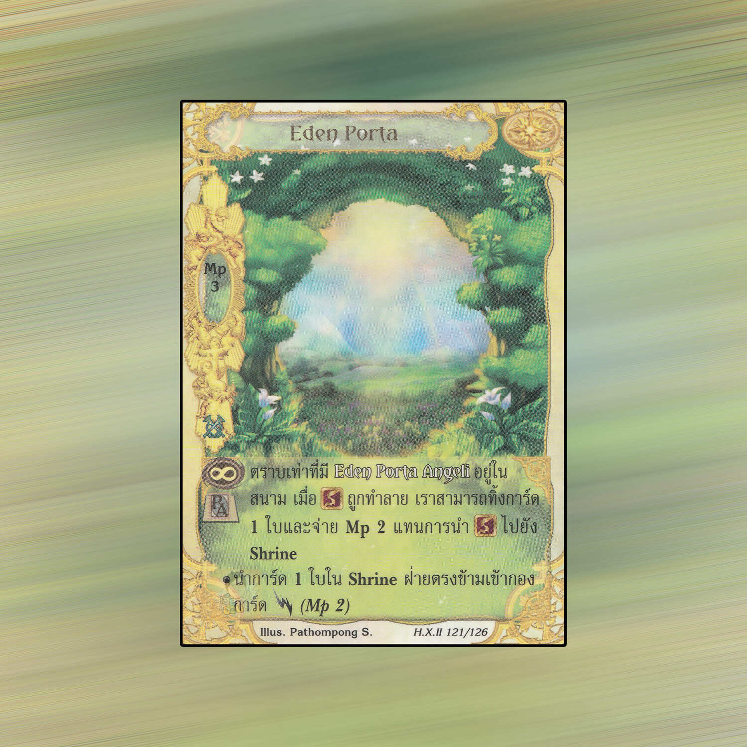 เป็นการ์ดเกม Summoner Master OG ในชุด Hymn of Exodus II นี้จะมีการ์ดทั้งหมด 138 ใบ Eden Porta เป็น Mystic Card ประเภทการเปิดเผยของพระเจ้า หมายเลข 121 ระดับการค้นหาเป็นการ์ดทั่วไป