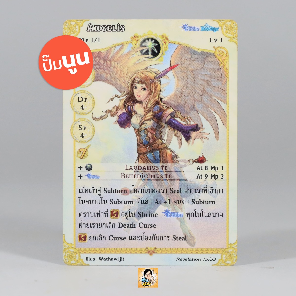 เป็นการ์ดเกม Summoner Master OG ในชุด Revelation นี้จะมีการ์ดทั้งหมด 54 แบบ “Angelis” เป็น Seal Card ธาตุ Light เผ่าพันธุ์ Divine Messenger หมายเลข 15 ระดับการค้นหา Special