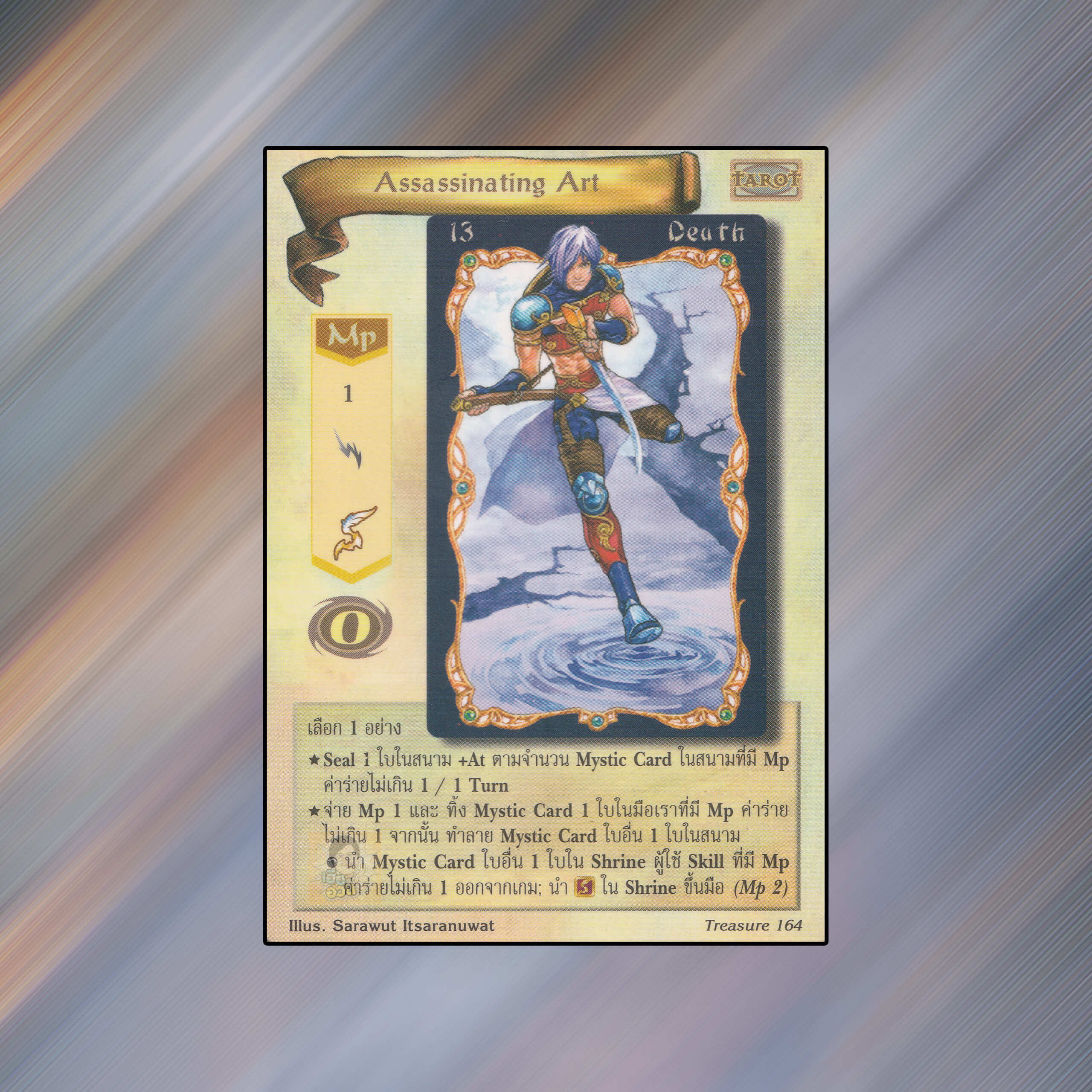 เป็นการ์ดเกม Summoner Master OG ในชุด Treasure นี้จะมีการ์ดทั้งหมด 314 ใบ Assassinating Art เป็น Mystic Card ประเภทไพ่ทาโรต์ หมายเลข 164: ระดับการค้นหาเป็นการ์ดโปรโมชัน