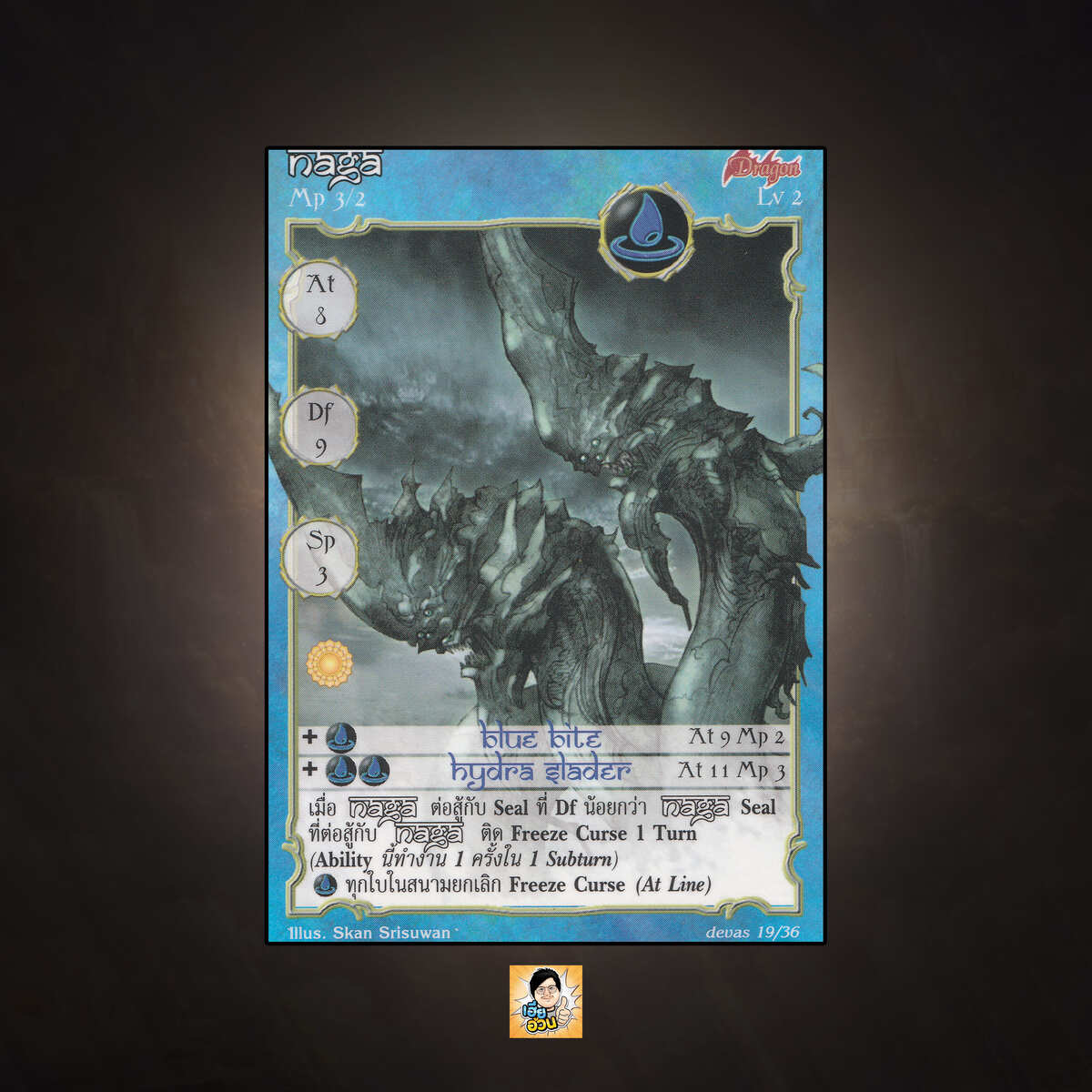เป็นการ์ดเกม Summoner Master OG ในชุด Devas นี้จะมีการ์ดทั้งหมด 36 แบบ Naga เป็น Seal Cards ธาตุน้ำ เผ่ามังกร หมายเลข 19: ระดับการค้นหาเป็นการ์ดพิเศษ