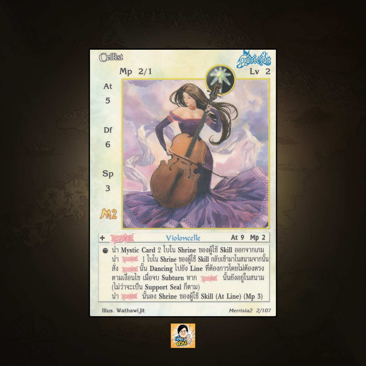 เป็นการ์ดเกม “Summoner Master OG” ในชุด “Merrisia 2nd Impression” นี้จะมีการ์ดทั้งหมด 108 แบบ “Cellist” เป็น Seal Card ธาตุ Light ประเภท Musician หมายเลข 2 ระดับการค้นหา Rare