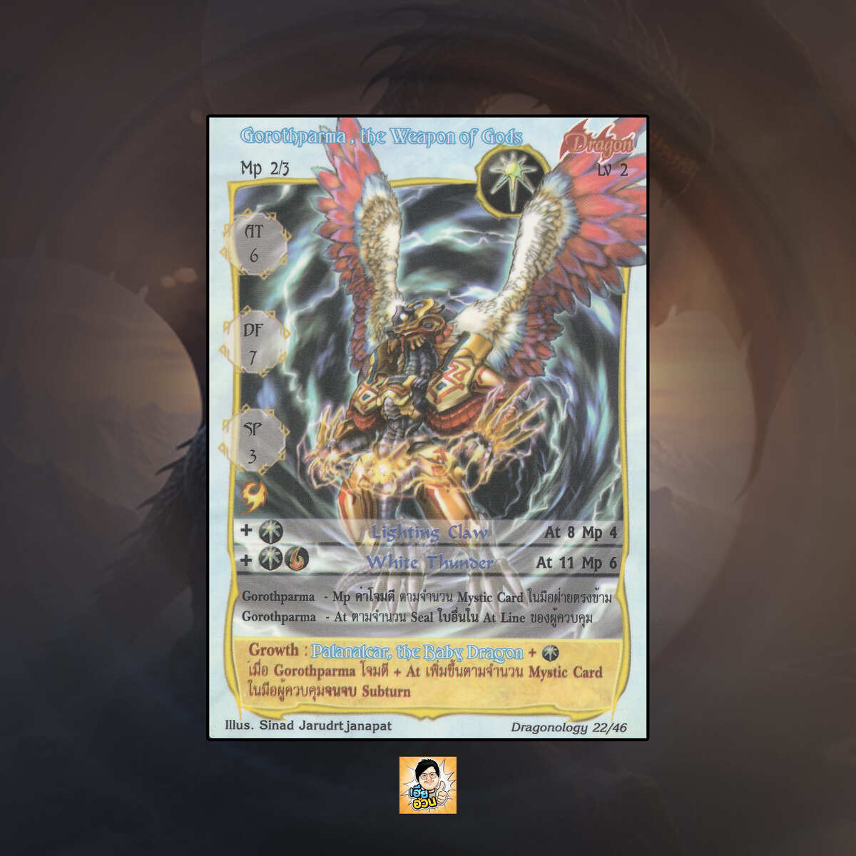 เป็นการ์ดเกม Summoner Master OG ในชุด Dragonology นี้จะมีการ์ดทั้งหมด 48 แบบ “Gorothparma, the Weapon of Gods” เป็น Seal Card ธาตุลม เผ่ามังกร หมายเลข 22: ระดับการค้นหาเป็นการ์ดพิเศษ