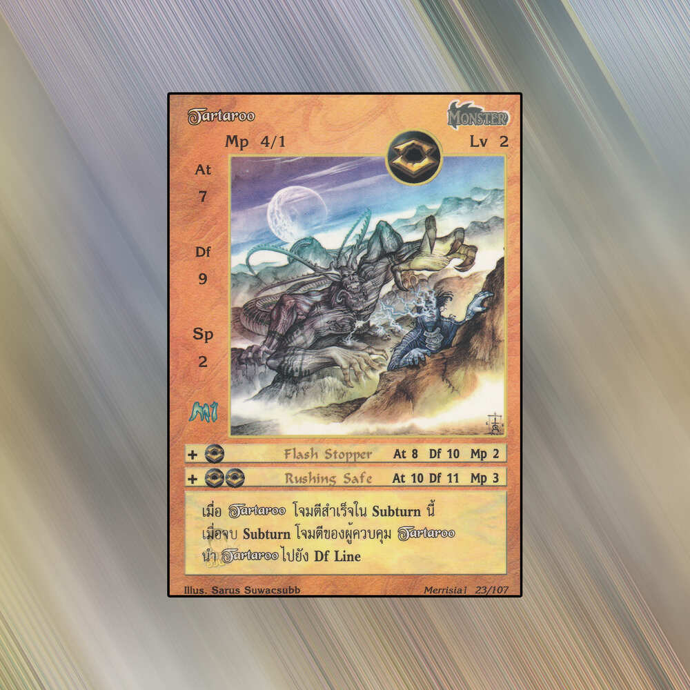เป็นการ์ดเกม Summoner Master OG ในชุด Merrisia 1st Impression นี้จะมีการ์ดทั้งหมด 107 แบบ Tartaroo เป็น Seal Card ธาตุดิน เผ่าสัตว์ประหลาด หมายเลข 23: ระดับการค้นหาเป็นการ์ดทั่วไป