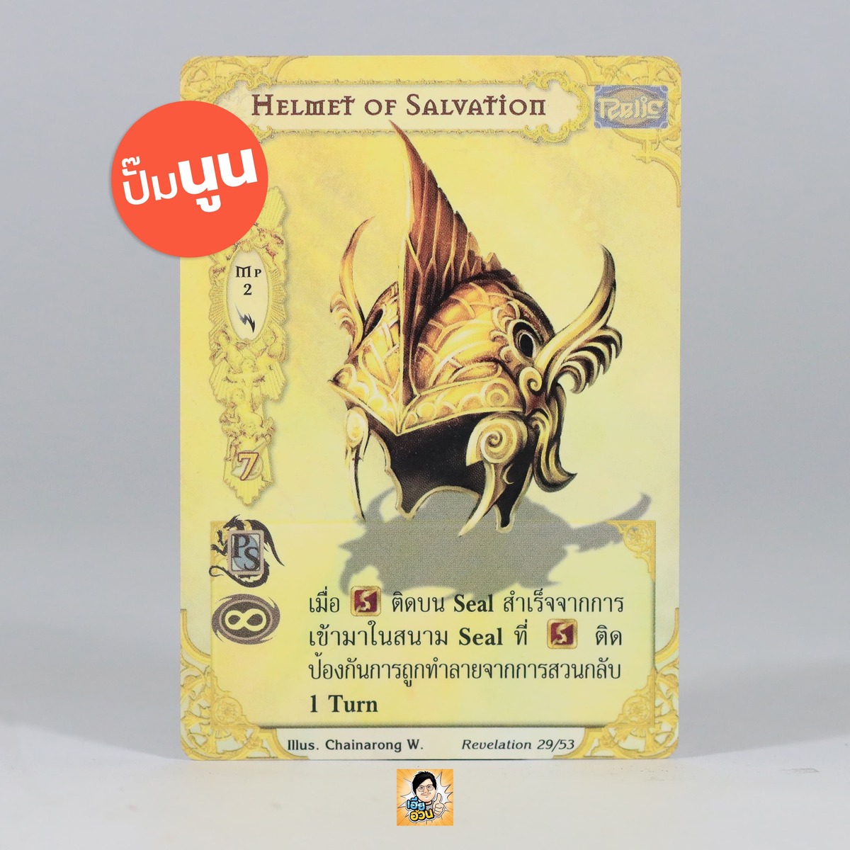 เป็นการ์ดเกม Summoner Master OG ในชุด Revelation นี้จะมีการ์ดทั้งหมด 54 แบบ “Helmet of Salvation” เป็น Seal Card ชนิด Revelation หมายเลข 29 ระดับการค้นหา Special