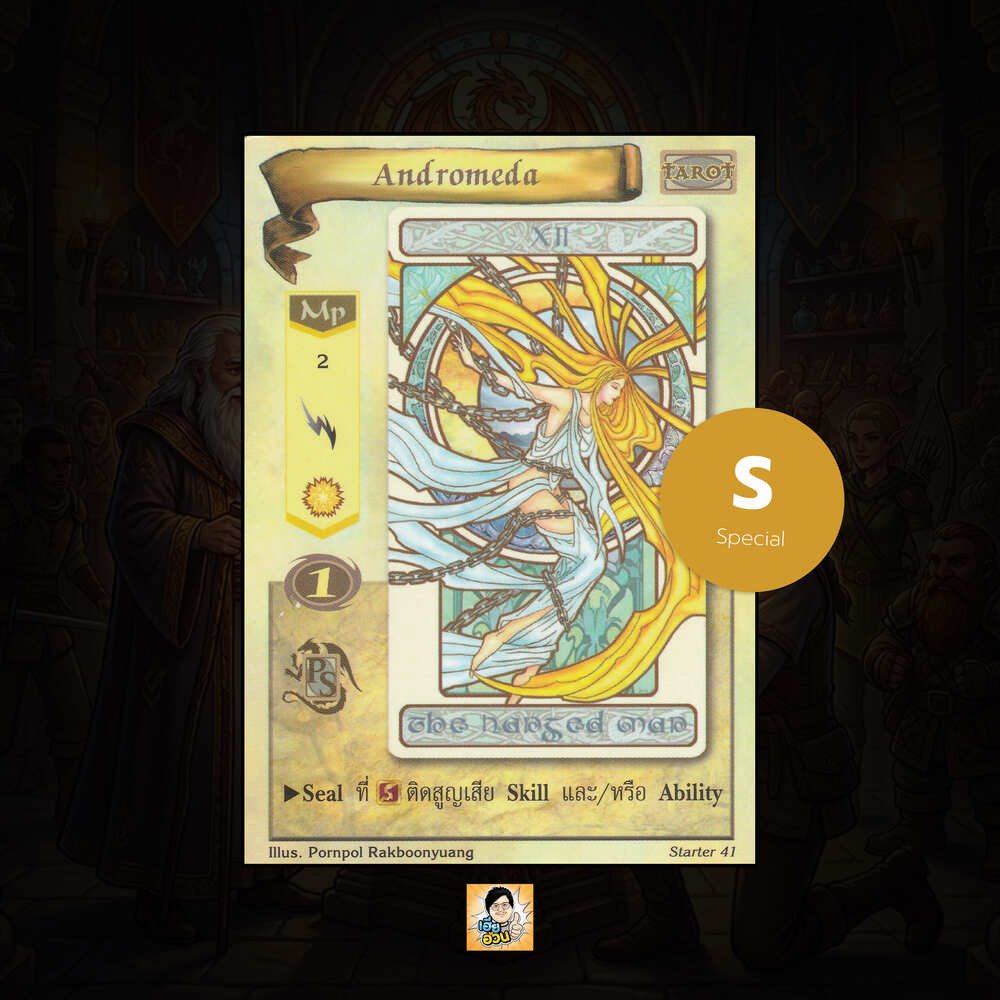 เป็นการ์ดเกม “Summoner Master OG” ในชุด “Starter” นี้จะมีการ์ดทั้งหมด 323 แบบ “Andromeda” เป็น Mystic Card ประเภท Tarot หมายเลข 41 ระดับการค้นหา Special