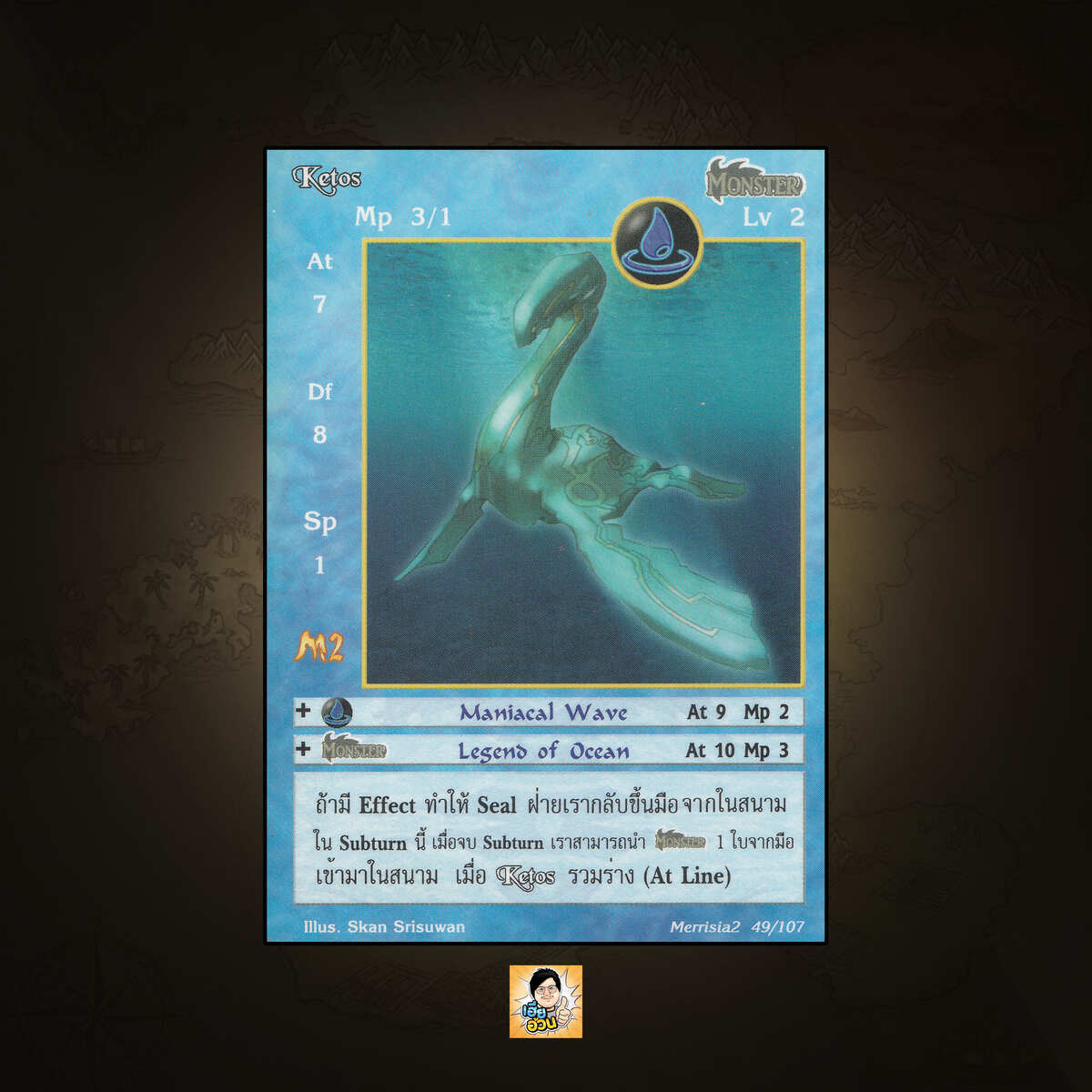 เป็นการ์ดเกม “Summoner Master OG” ในชุด “Merrisia 2nd Impression” นี้จะมีการ์ดทั้งหมด 108 แบบ “Ketos” เป็น Seal Card ธาตุ Water ประเภท Monster หมายเลข 49 ระดับการค้นหา Rare