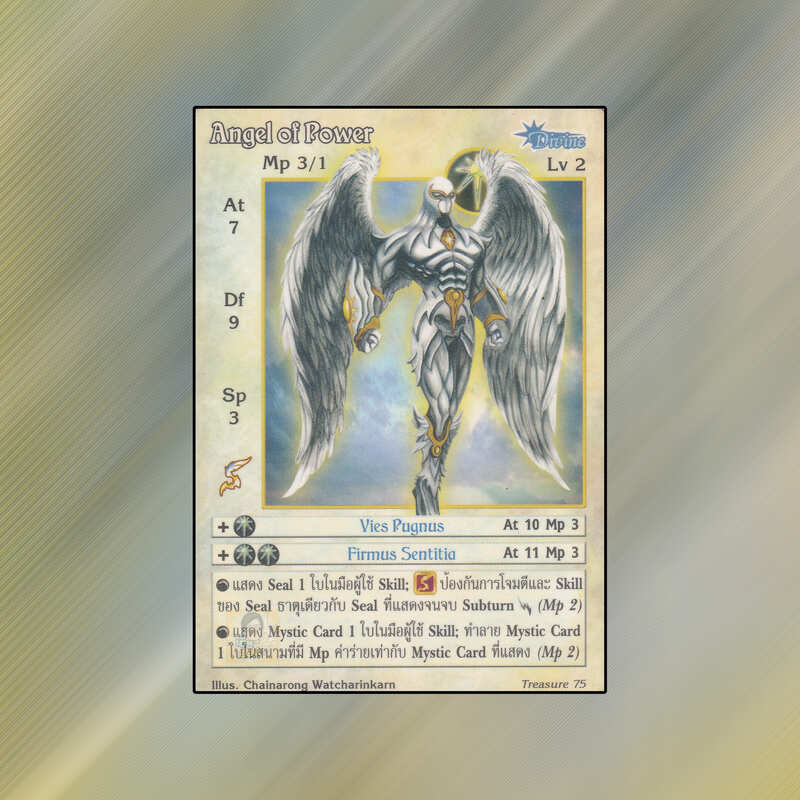 เป็นการ์ดเกม Summoner Master OG ในชุด Treasure นี้จะมีการ์ดทั้งหมด 314 ใบ Angel of Power เป็น Seal Cards ธาตุแสง เผ่าเทพเจ้า หมายเลข 75: ระดับการค้นหาเป็นการ์ดโปรโมชัน