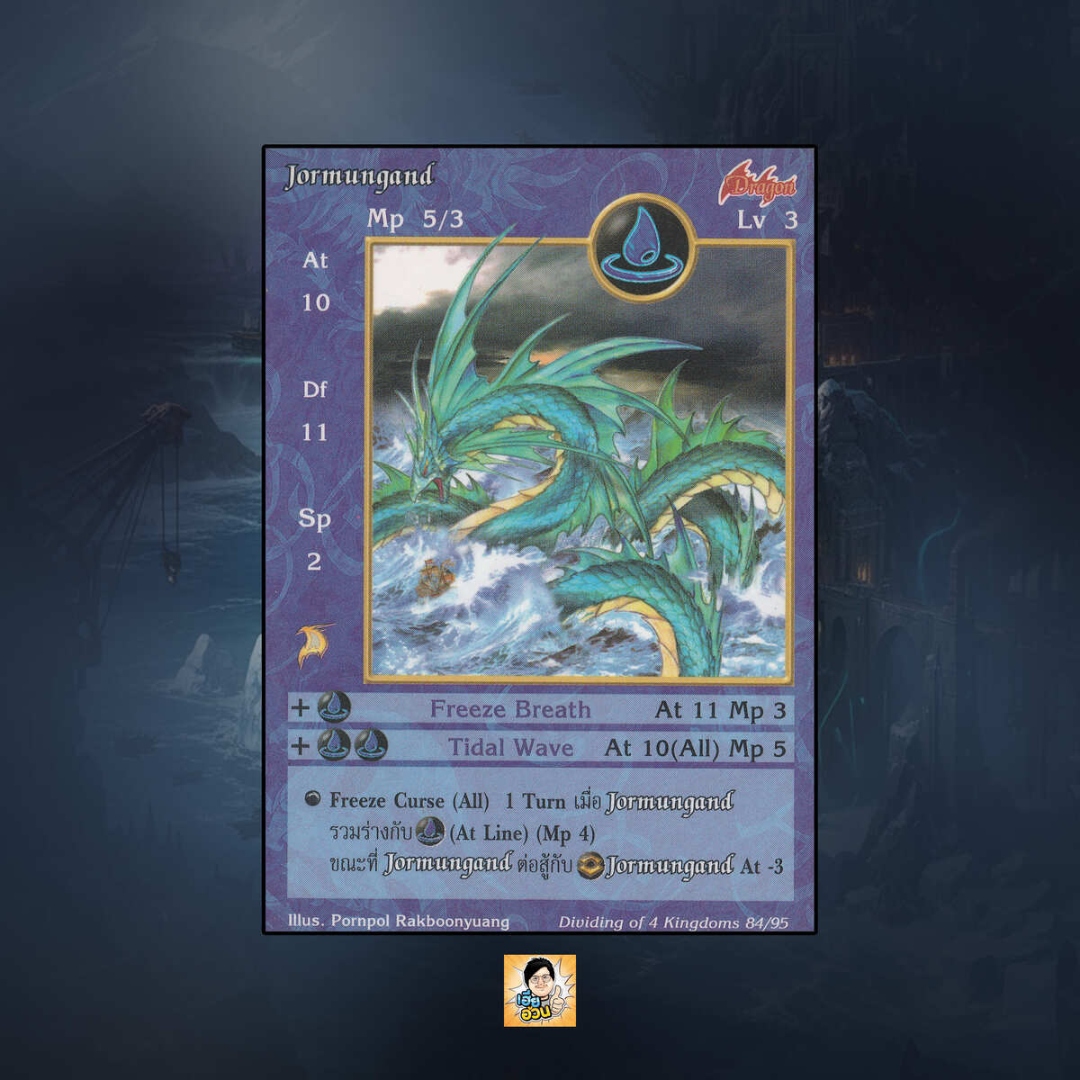 Jormungand เป็นการ์ดเกม Summoner Master OG ชุด Dividing of 4 Kingdoms เป็น Seal Cards หมายเลข 84 เลเวล 3 ธาตุน้ำ เผ่ามังกร: ระดับการค้นหาเป็นการ์ดหายาก