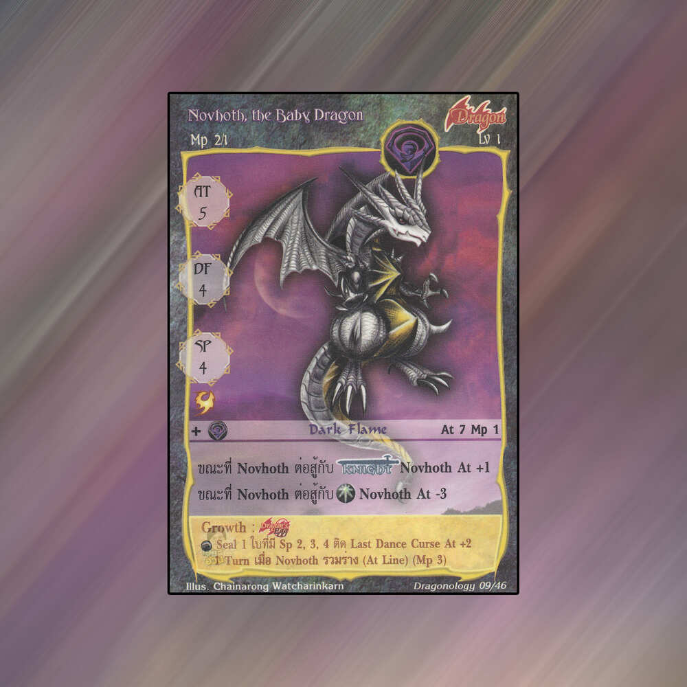 เป็นการ์ดเกม Summoner Master OG ในชุด Dragonology นี้จะมีการ์ดทั้งหมด 48 แบบ Novhoth, the Baby Dragon เป็น Seal Card ธาตุมืด เผ่ามังกร หมายเลข 9: ระดับการค้นหาเป็นการ์ดพิเศษ