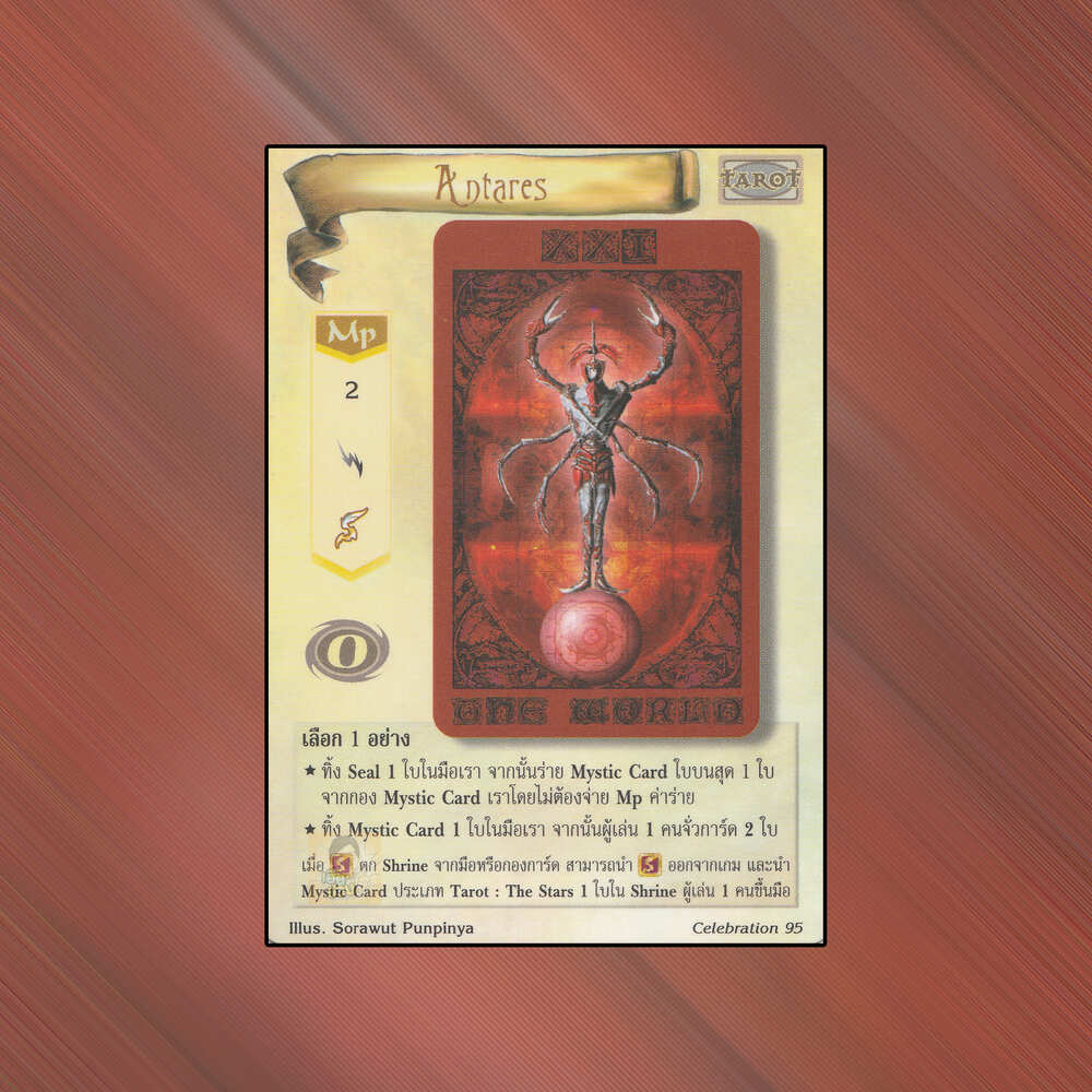 เป็นการ์ดเกม Summoner Master OG ในชุด Celebration นี้จะมีการ์ดทั้งหมด 235 ใบ Antares เป็น Mystic Card ประเภทไพ่ทาโรต์ หมายเลข 95: ระดับการค้นหาเป็นการ์ดโปรโมชัน