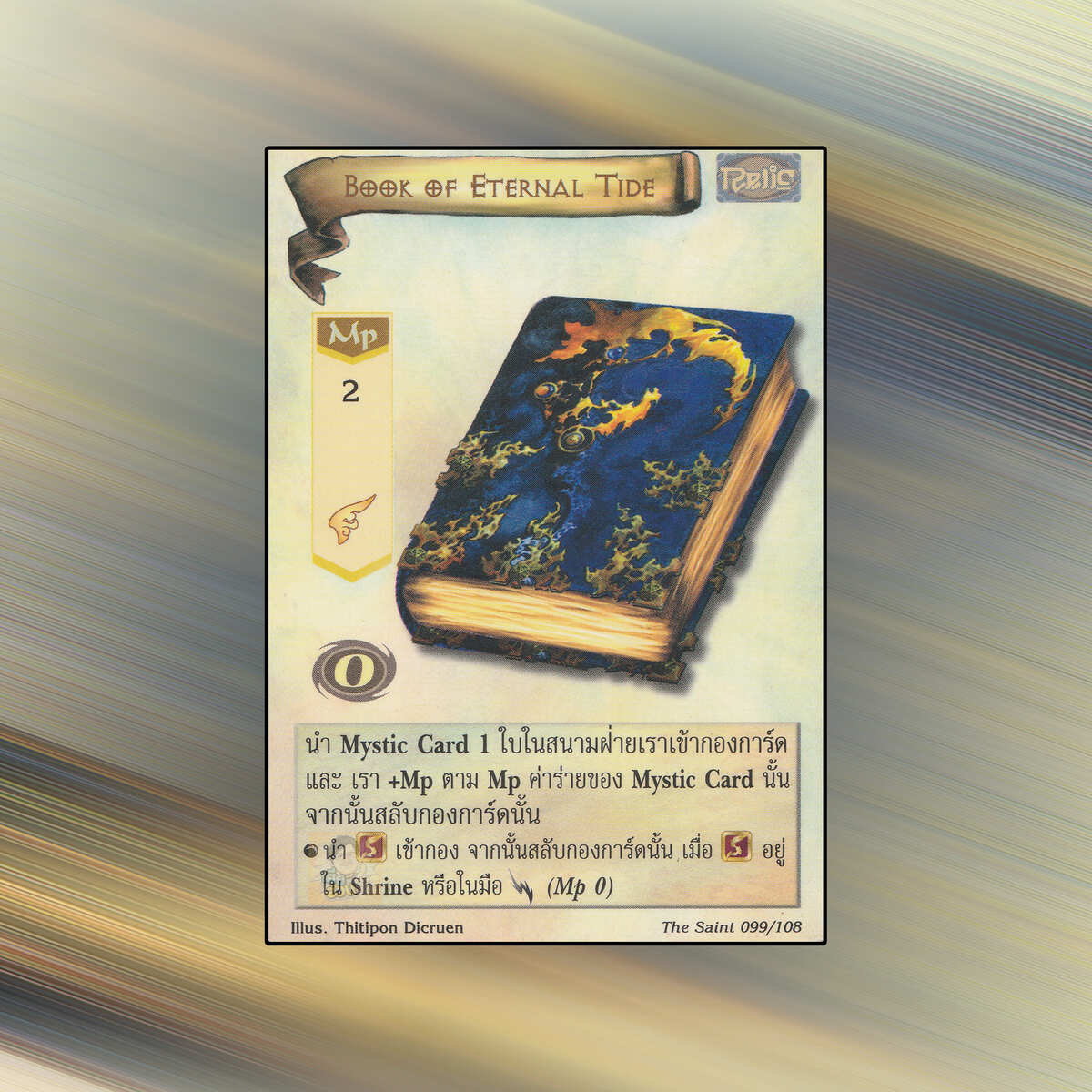 เป็นการ์ดเกม Summoner Master OG ในชุด The Saint นี้จะมีการ์ดทั้งหมด 108 แบบ Book of Eternal Tide เป็น Mystic Card ประเภท Relic หมายเลข 99 ระดับการค้นหา Rare
