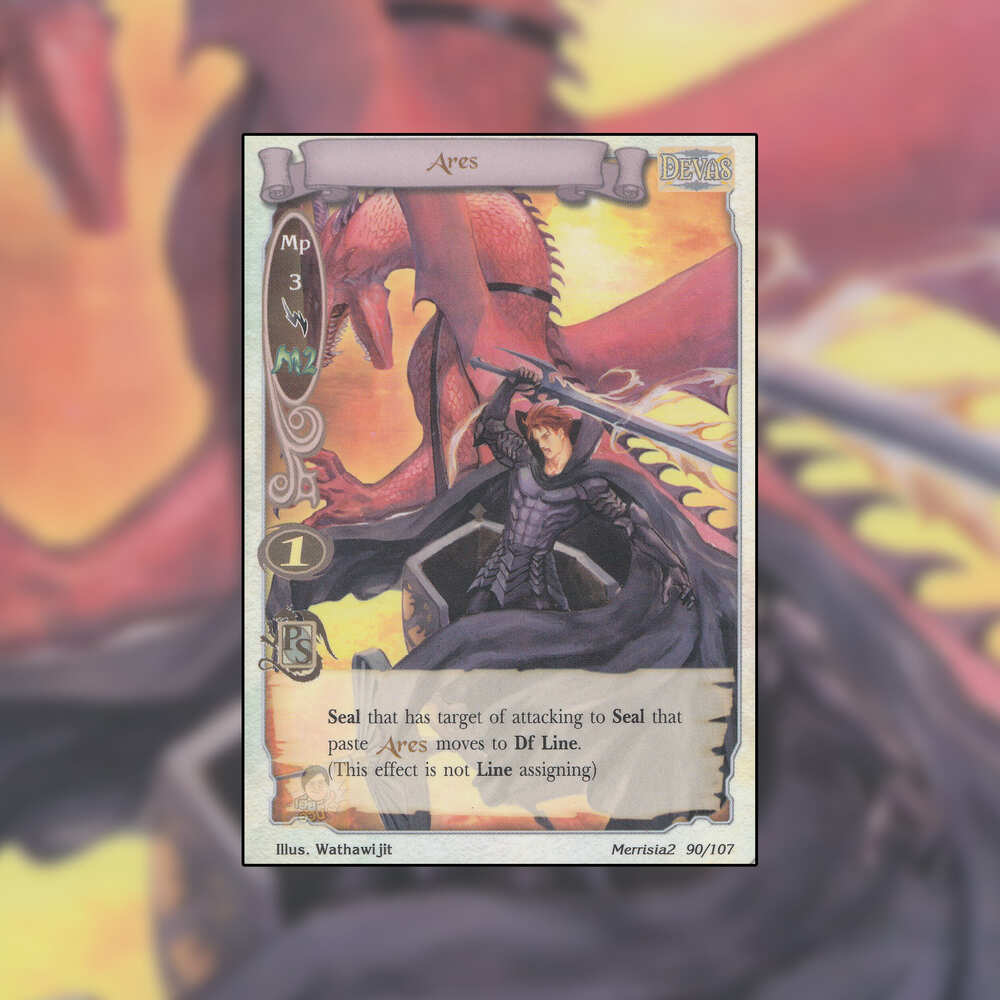 ในชุด Merrisia 2nd Impression นี้จะมีการ์ดทั้งหมด 108 ใบ Ares เป็น Mystic Cards ประเภท Devas หมายเลข 90: ระดับการค้นหาอยู่ในระดับทั่วไป