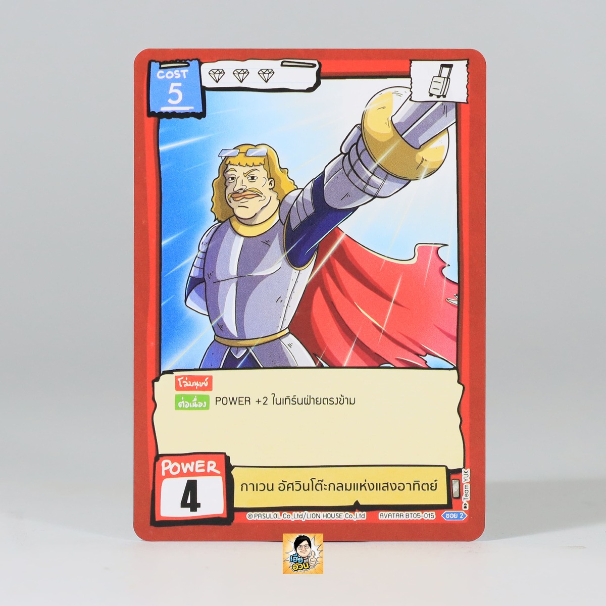 “กาเวน อัศวินโต๊ะกลมแห่งแสงอาทิตย์” จากการ์ดเกม Battle of Talingchan ชุด BT05 – Culture ช๊อค เป็น Avatar Card ชาวต่างชาติ หมายเลข BT05-015 ระดับการค้นหา Common