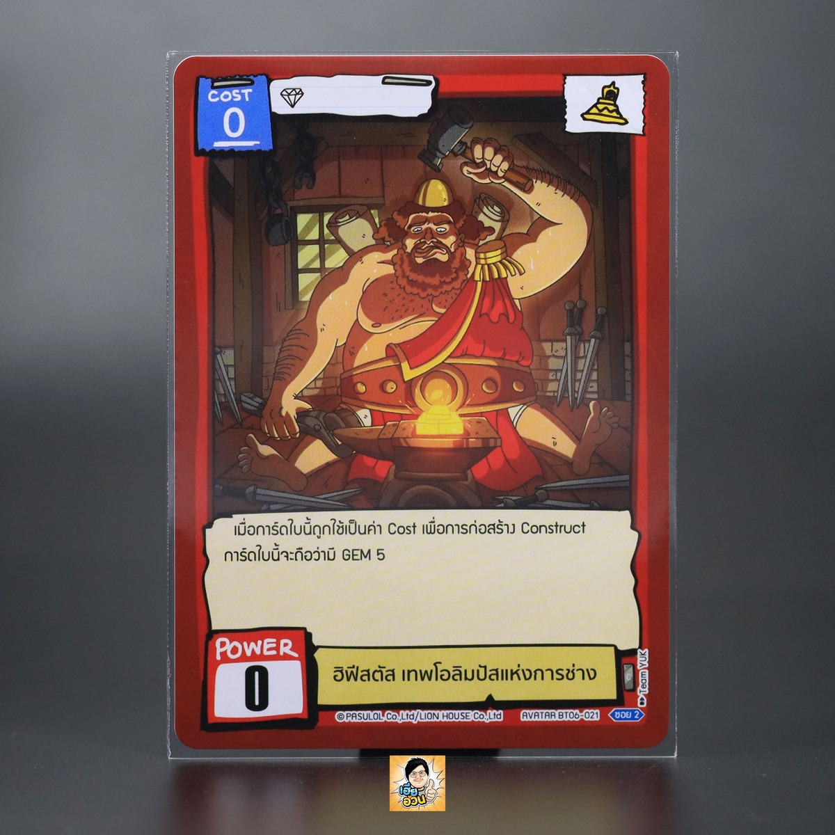 “ฮิฟีสตัส เทพโอลิมปัสแห่งการช่าง” จากการ์ดเกม Battle of Talingchan ชุด BT06 โลกา Armageddon เป็น Avatar Card เทพ หมายเลข BT06-021 ระดับการค้นหา Common
