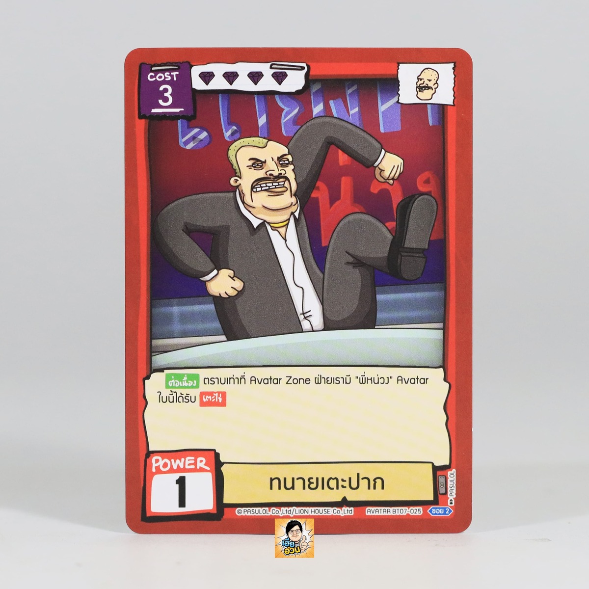 “ทนายเตะปาก” จากการ์ดเกม Battle of Talingchan ชุด BT07 – Life of หน่วง เป็น Avatar Card คน หมายเลข BT07-025 ระดับการค้นหา Common
