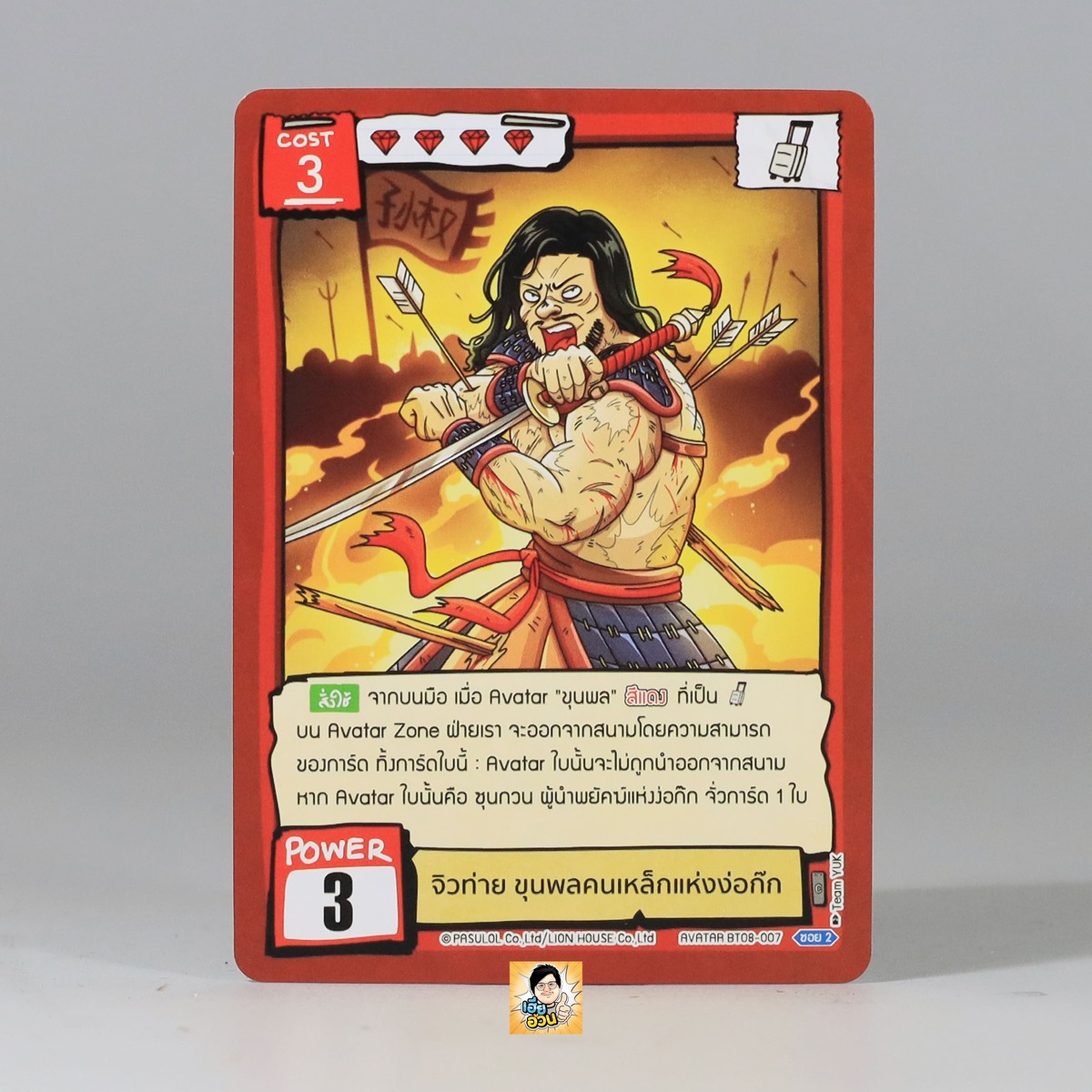 “เจิวท่าย ขุนพลคนเหล็กแห่งง่อก๊ก” จากการ์ดเกม Battle of Talingchan ชุด BT08 – เพราะ Warrior is นักรบ เป็น Avatar Card ชาวต่างชาติ หมายเลข BT08-007 ระดับการค้นหา Common