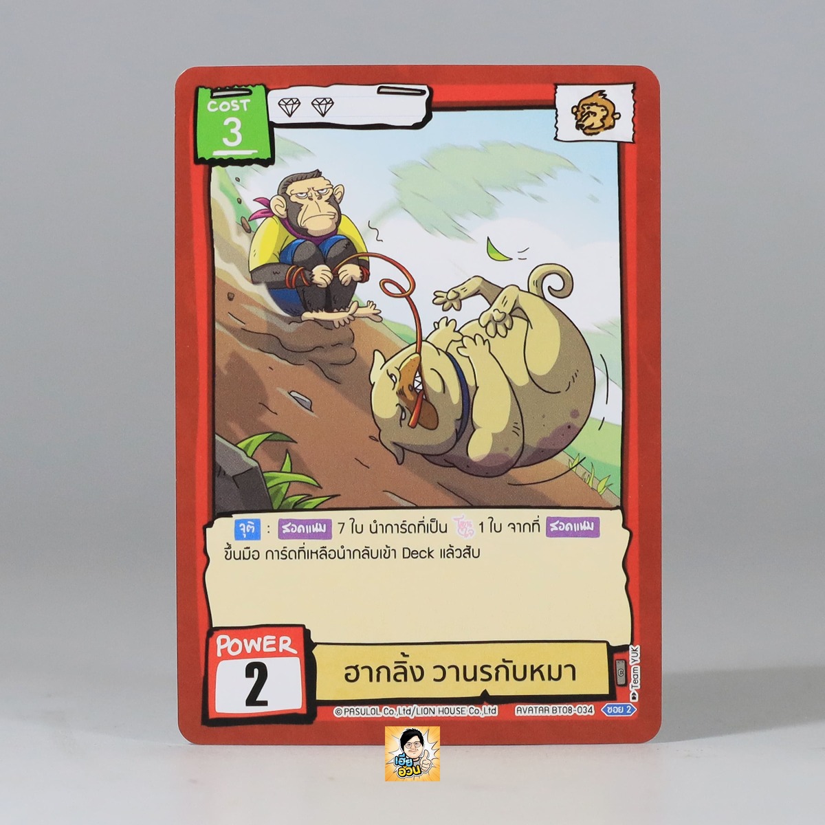 “ฮากลิ้ง วานรกับหมา” จากการ์ดเกม Battle of Talingchan ชุด BT08 – เพราะ Warrior is นักรบ เป็น Avatar Card สัตว์ หมายเลข BT08-034 ระดับการค้นหา Common