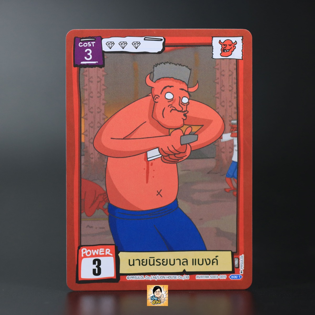 นายนิรยบาล แบงค์ จากการ์ดเกม Battle of Talingchan ชุด SD03 นรกก็แค่น้ำพริก เป็น Avatar Card นรก หมายเลข SD03-009 ระดับการค้นหา Common