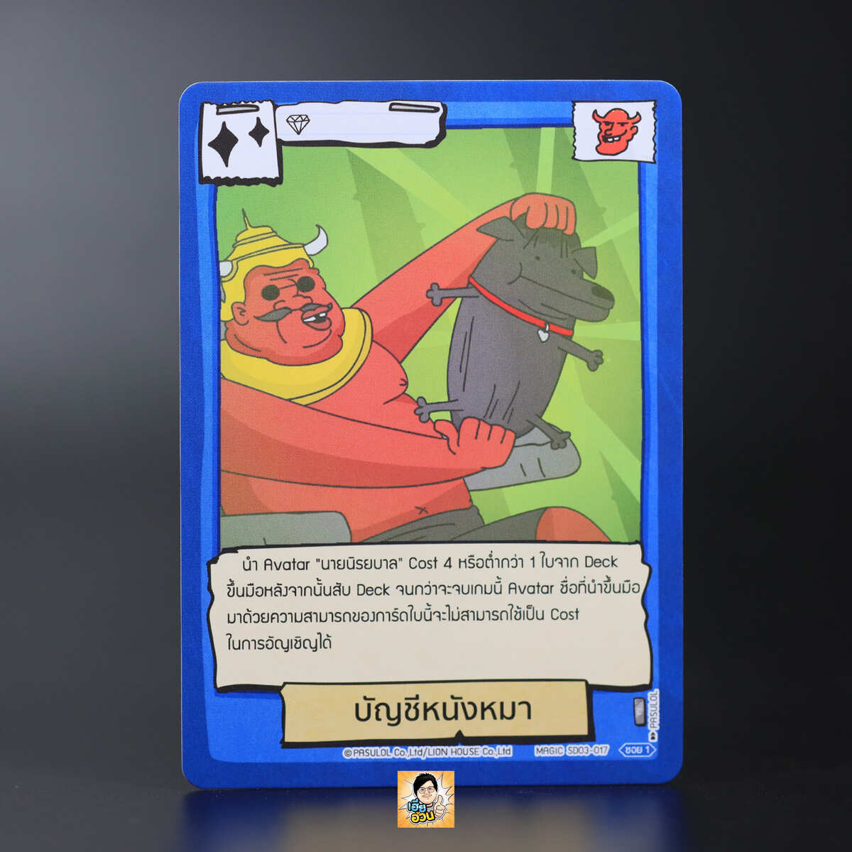 บัญชีหนังหมา จากการ์ดเกม Battle of Talingchan ชุด SD03 นรกก็แค่น้ำพริก เป็น Magic Card นรก หมายเลข SD03-017 ระดับการค้นหา Common