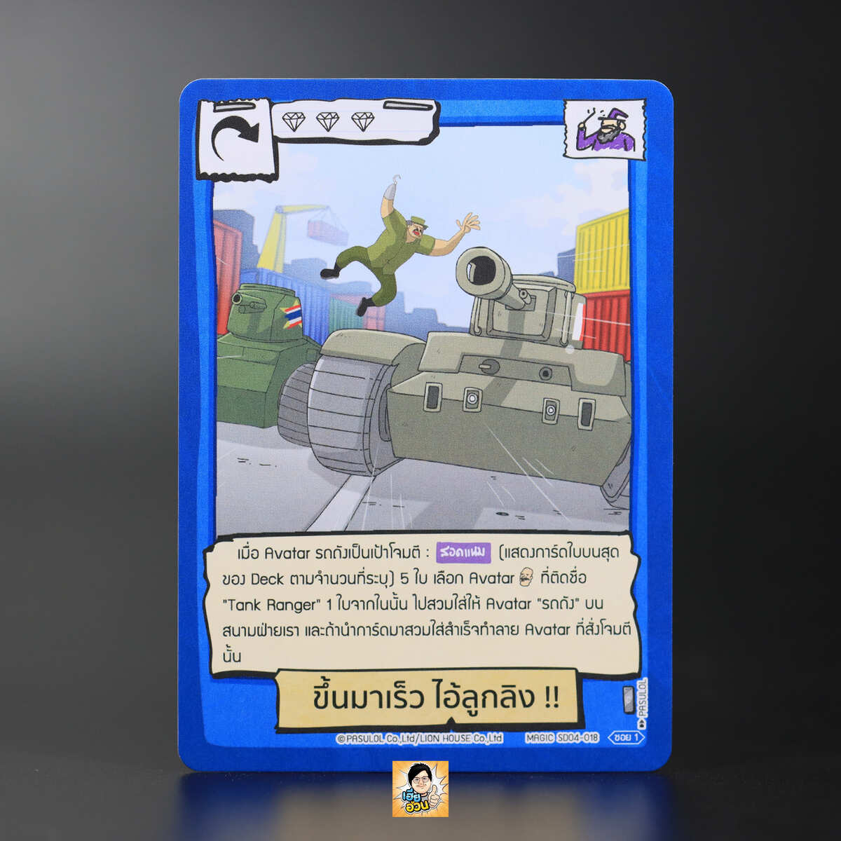 เมื่อ Avatar รถถังเป็นเป้าโจมตี : สอดแนม (ดูการ์ดใบบนสุดของเด็ค) 5 ใบ เลือก Avatar Symbol {คน} ที่ติดชื่อ “Tank Ranger” 1 ใบจากในนั้น ไปสวมใส่ให้ Avatar “รถถัง” บนสนามฝ่ายเรา และถ้านำการ์ดมาสวมใส่สำเร็จทำลาย Avatar ที่สั่งโจมตีนั้น
