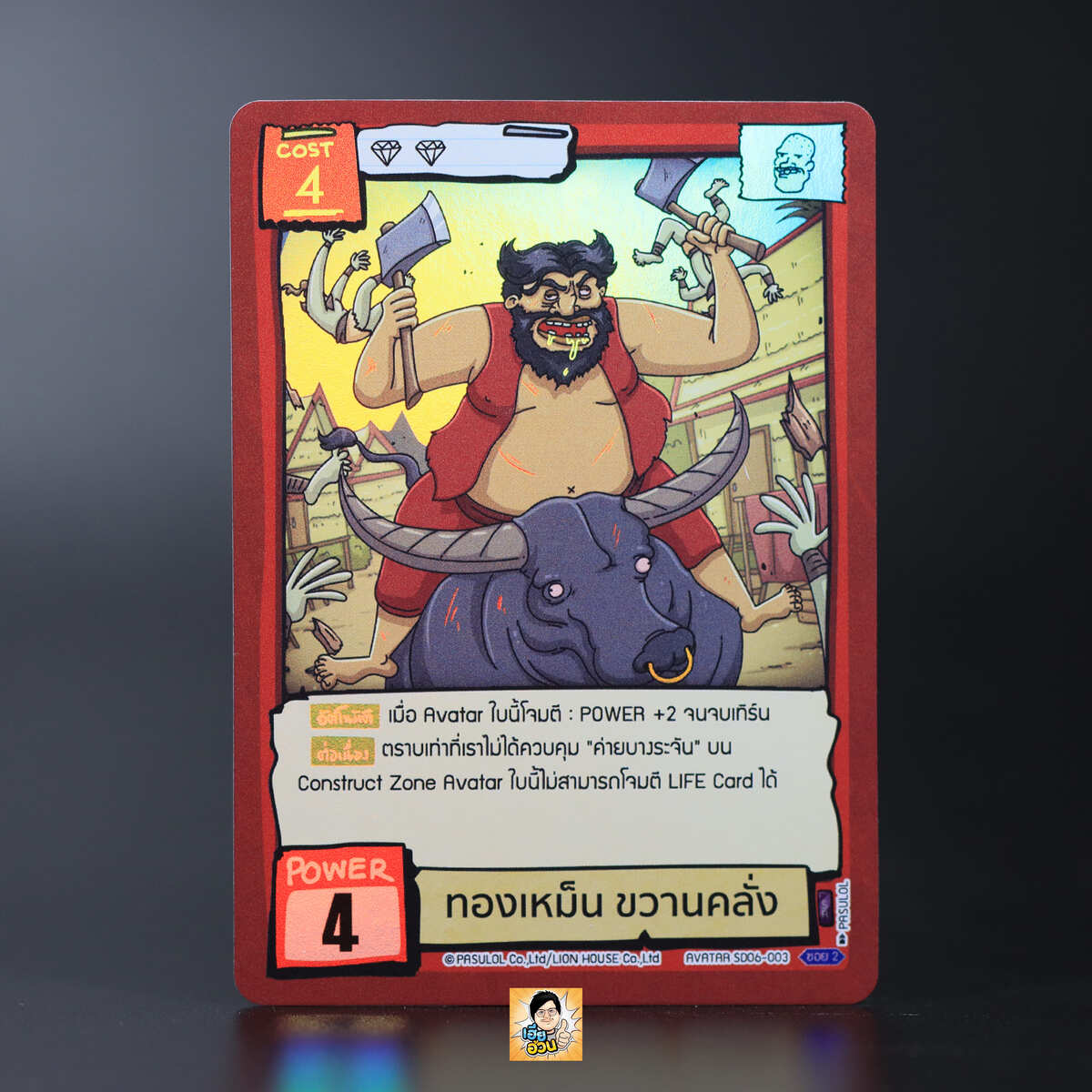 “ทองเหม็น ขวานคลั่ง” จากการ์ดเกม “Battle of Talingchan” ชุด “SD06 ๖ ประจัญบาน” เป็น Avatar Card คน หมายเลข SD06-003 ระดับการค้นหา Super Rare-