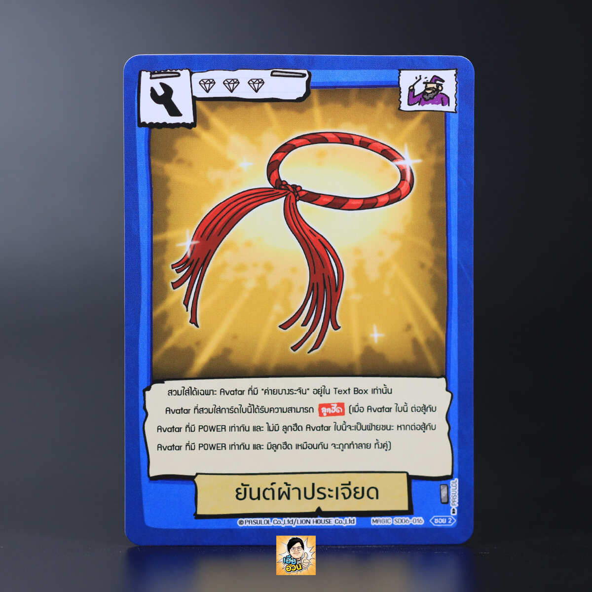“ยันต์ผ้าประเจียด” จากการ์ดเกม “Battle of Talingchan” ชุด “SD06 ๖ ประจัญบาน” เป็น Magic Card จอมเวทย์ หมายเลข SD06-016 ระดับการค้นหา Common-
