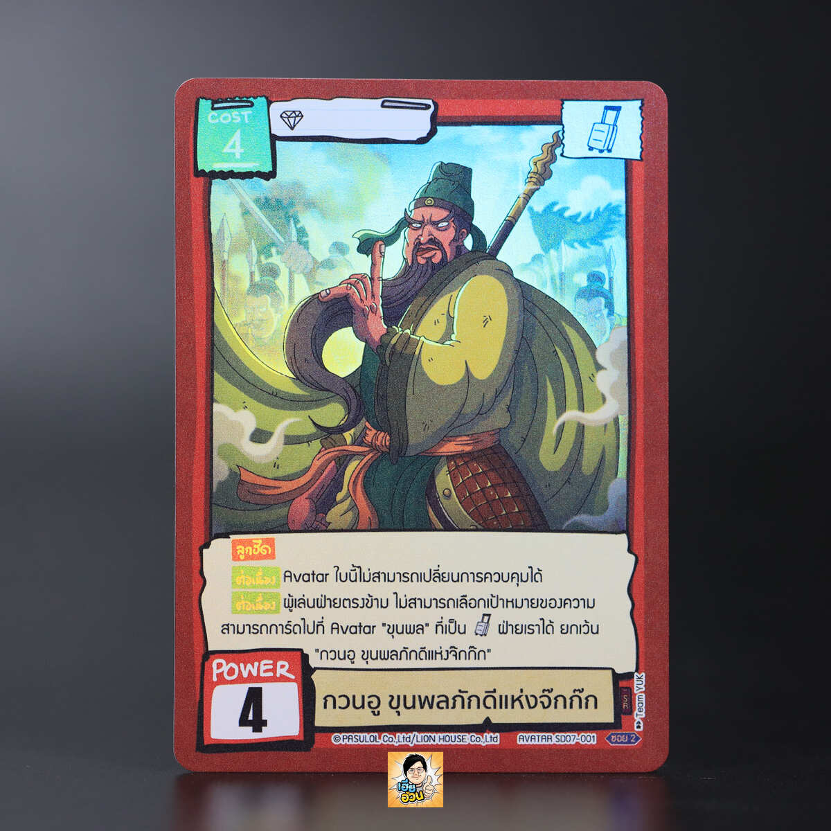 กวนอู ขุนพลภักดีแห่งจ๊กก๊ก จากการ์ดเกม Battle of Talingchan ชุด SD07 VS 18 หัวเมือง เป็น Avatar Card ต่างชาติ หมายเลข SD07-001 ระดับการค้นหา Super Rare